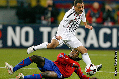 Армеец Чиди Одиа и игрок команды "Бешикташ" Экрем Даг в матче Лиги чемпионов УЕФА по футболу: ЦСКА (Россия) - "Бешикташ" (Турция) - 2:1