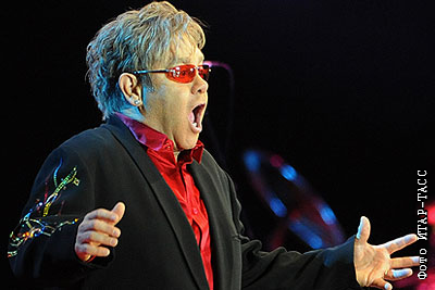 Британский певец и музыкант Элтон Джон во время выступления на концерте "Red Piano" в СК "Олимпийский"