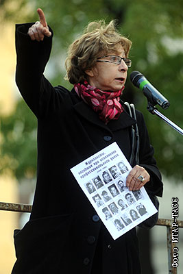 Актриса Лия Ахеджакова во время выступления на митинге на Чистых прудах, посвященном третьей годовщине гибели журналистки Анны Политковской