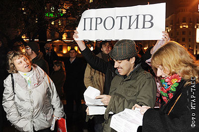 Участники акции протеста против результатов выборов в Мосгордуму на Пушкинской площади
