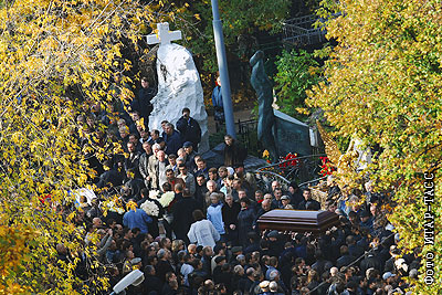 Криминальный авторитет Вячеслав Иваньков во вторник похоронен на Ваганьковском кладбище. Как передает корреспондент "Интерфакса", свежая могила покрыта цветами и венками. На них, в частности, можно прочитать: "Брату от дедушки Хасана", "Прости, что не уберегли". Похороны прошли без инцидентов. Друзья Иванькова корректно попросили журналистов стереть сделанные мобильными телефонами и маленькими видеокамерами снимки, уйти и дать возможность близким попрощаться с покойным