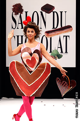 Французская актриса Корин Тузэ представила наряд из шоколада на 15-м Salon du Chocolat в Париже