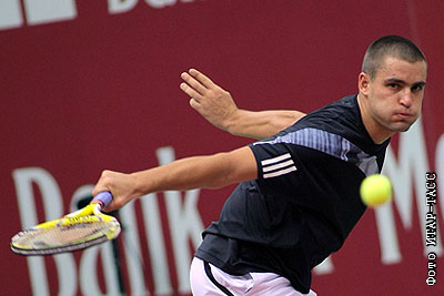 Российский теннисист Михаил Южный в матче против аргентинца Орасио Себальоса на теннисном турнире "Кубок Кремля" в СК "Олимпийский"