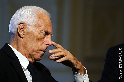 Итальянский дизайнер Джорджио Армани во время пресс-конференции, посвященной показу коллекции Emporio Armani сезона осень-зима 2009/2010 в ГУМе