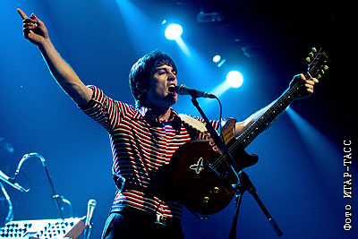 Участник шотландской рок-группы "Franz Ferdinand" Ник МакКарти во время выступления на концерте в рамках церемонии награждения премией Rock Alternative Music Prize (RAMP) в клубе "Б1 Maximum"