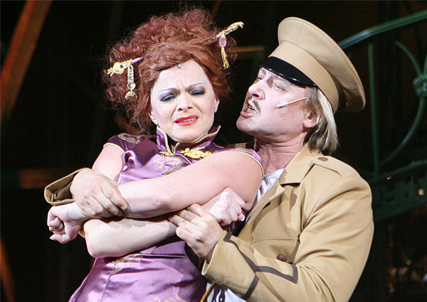 Певица Лариса Долина и Дмитрий Харатьян на пресс-показе мюзикла в постановке Егора Дружинина "Любовь и шпионаж" в Театре Российской армии, 2010 год