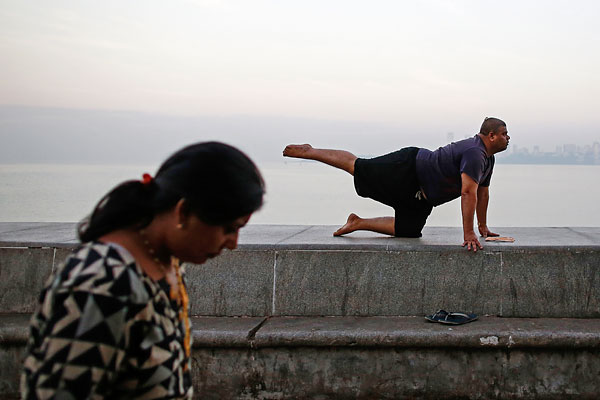 Утренняя зарядка на набережной в Мумбаи. Индия.