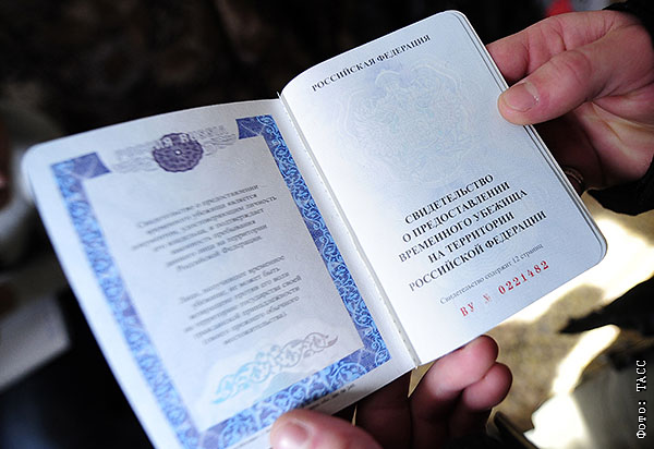 Свидетельство о предоставлении временного убежища на территории РФ беженца с юго-востока Украины.