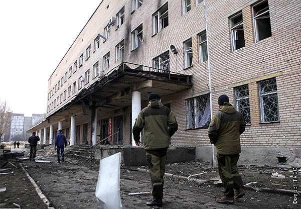 В результате обстрела Донецка украинскими войсками один из снарядов попал в здание больницы
