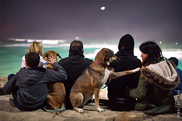 Зрители во время ночного соревнования по серфингу в израильском городе Ашдод