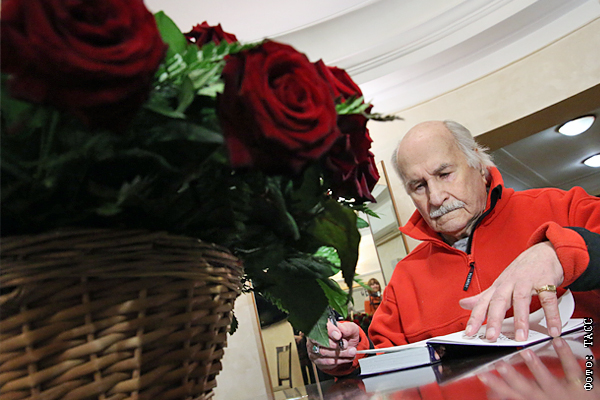 Актер Владимир Зельдин после спектакля "Человек из Ламанчи" в Театре Российской армии, 2014 год