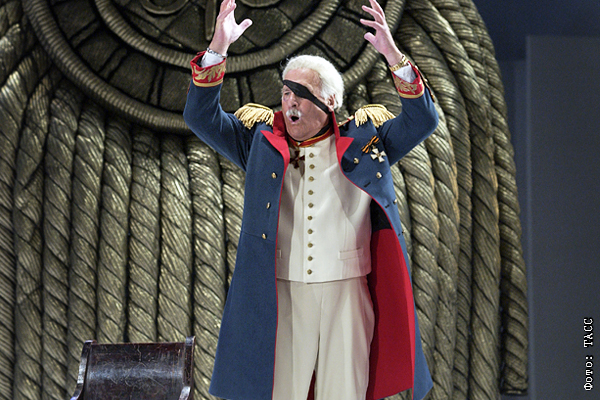 Актер Владимир Зельдин в роли Кутузова во время генеральной репетиции обновленной постановки пьесы А.Гладкова "Давным-давно" режиссера Бориса Морозова, 2005 год