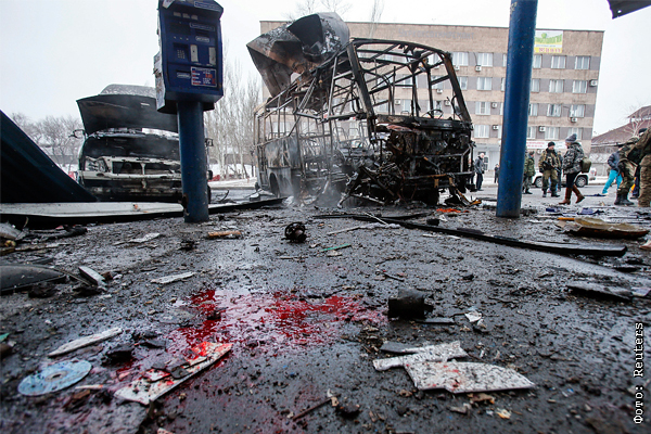 Артиллерийские обстрелы продолжаются во многих районах Донецкой области, им подвергаются населенные пункты, находящиеся по разные стороны конфликта. Так, 11 февраля в Донецке под обстрел попал находившийся на автостанции автобус и металлургический завод. По предварительным данным, в результате этого погибло четыре человека, ранены не менее 10. Накануне, 10 февраля, в результате обстрела Краматорска по последним данным СНБО погибли 15 человек, ранены 63.