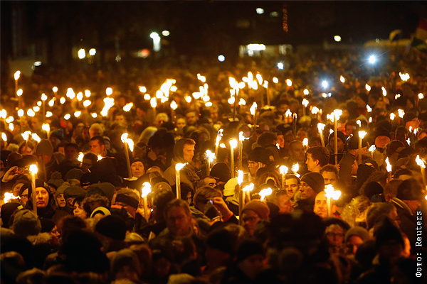 Десятки тысяч человек собрались в понедельник вечером в датской столице, чтобы почтить память жертв терактов, произошедших в конце прошлой недели. Акция началась с минуты молчания. Участники зажигали свечи и факелы на площади, неподалеку от которой произошло первое нападение. 14 февраля в Копенгагене неизвестный открыл стрельбу близ кафе, где проходил семинар, посвященный теме богохульства и свободы самовыражения с участием шведского художника-автора карикатур на пророка Мухаммеда. В тот же день поздно вечером выстрелы также раздались у синагоги в центре города. В результате этих двух нападений погибли два человека, еще пятеро получили ранения.