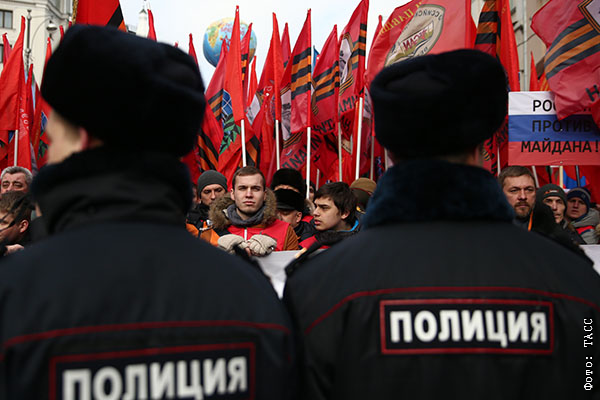 Участники митинга осудили прошлогодние события на Майдане в Киеве и пообещали не допустить подобного в России