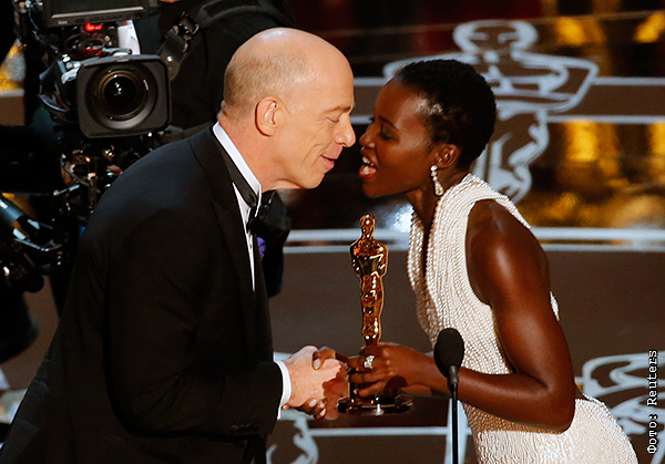 Люпита Нионго вручает статуэтку Дж.К.Симмонсу за лучшую мужскую роль второго плана