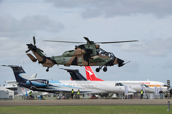Вертолет "Тигр" Королевских австралийских военно-воздушных сил приземляется после выступления на авиашоу