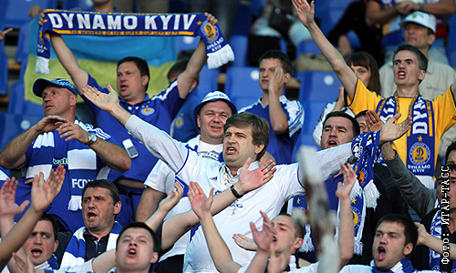 Болельщики "Динамо" на отборочном матче отборочного раунда Лиги чемпионов УЕФА: "Рубин" (Казань, Россия) - "Динамо" (Киев, Украина) – 2:1.