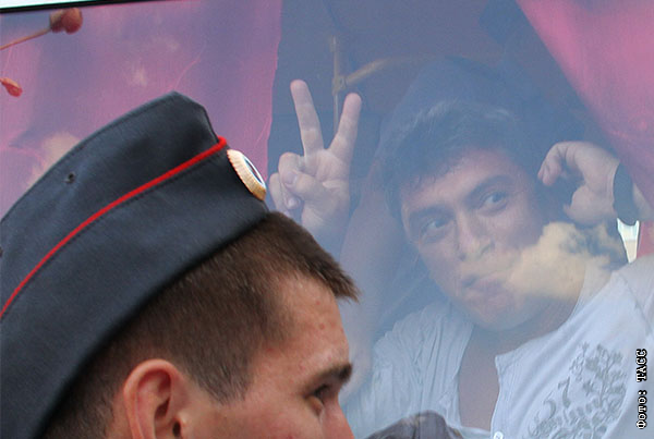 2010 год. Задержание лидера движения "Солидарность" Бориса Немцова (справа) на несанкционированной акции оппозиции в защиту 31-й статьи Конституции РФ на Триумфальной площади.