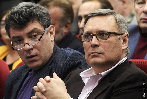 2011 год. Сопредседатель движения "Солидарность" Борис Немцов и лидер Российского народно-демократического союза (РНДС) Михаил Касьянов (слева направо) на собрании по созданию московского регионального отделения Партии народной свободы в гостинице "Измайловская".