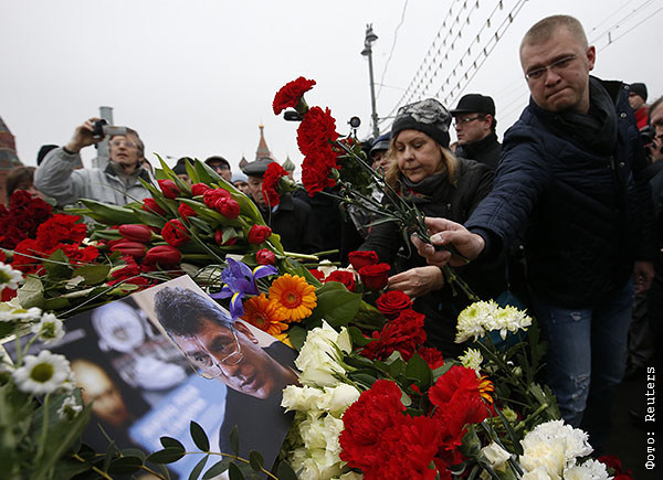 Москвичи несут цветы к месту убийства Бориса Немцова