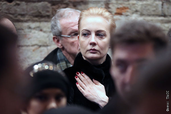 Супруга оппозиционера Алексея Навального Юлия на церемонии прощания с Борисом Немцовым в Сахаровском центре
