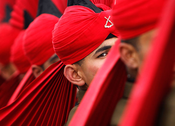 Новобранцы индийской армии во время парада на окраине Шринагара. Индия.