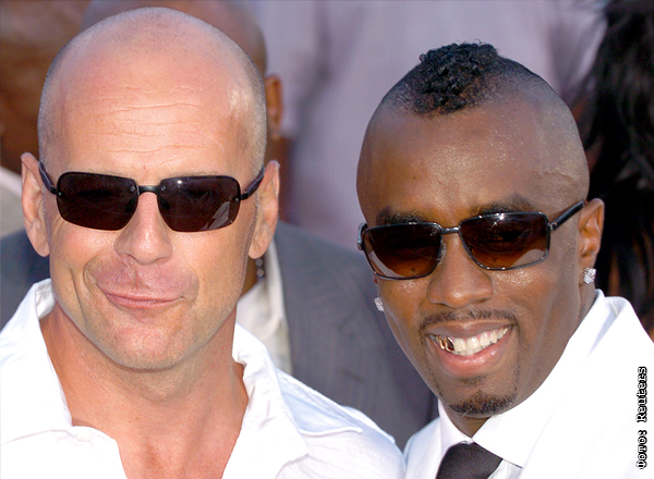 Брюс Уиллис и американский рэпер Пи Дидди (P. Diddy) на красной дорожке церемонии MTV Video Music Awards в Майами, август 2004 год