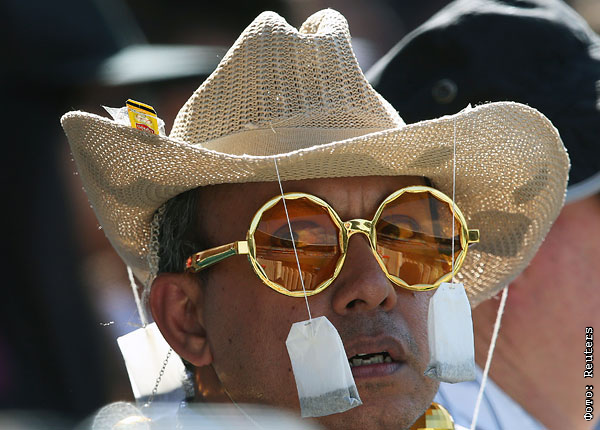 Болельщик четвертьфинального матча Кубка мира по крикету на стадионе Sydney Cricket Ground