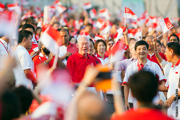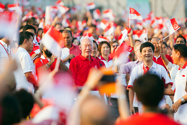 Люди приветствуют бывшего премьер-министра Ли Куан Ю во время празднования Национального дня Сингапура, август 2012 год