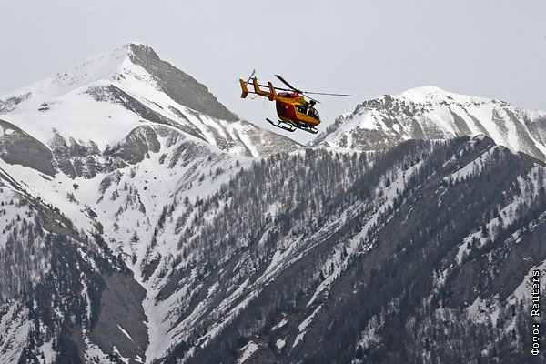 Вертолет, участвующий в поисково-спасательной операции в Альпах в районе крушения Airbus A320