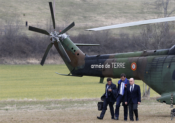 Министр внутренних дел Франции Бернар Казенёв (справа) прибыл к месту подготовки поисковой операции на юго-востоке Франции