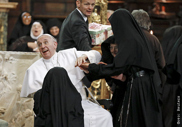 Монахини-затворницы приветствуют папу римского Франциска во время его пастырского визита в Неаполь