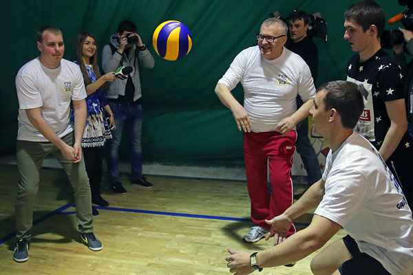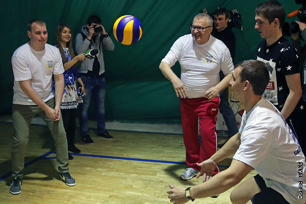 Лидер ЛДПР Владимир Жириновский в четверг посетил один из спорткомплексов Москвы, где проходила коллективная сдача норм "Готов к труду и обороне" (ГТО). Политик заявил, что депутаты ЛДПР будут регулярно сдавать нормативы ГТО, а затем сам попробовал выполнить некоторые упражнения.