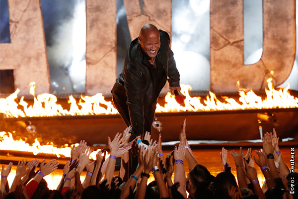 Американский актер Дуэйн Джонсон приветствует зрителей церемонии вручения MTV Movie Awards