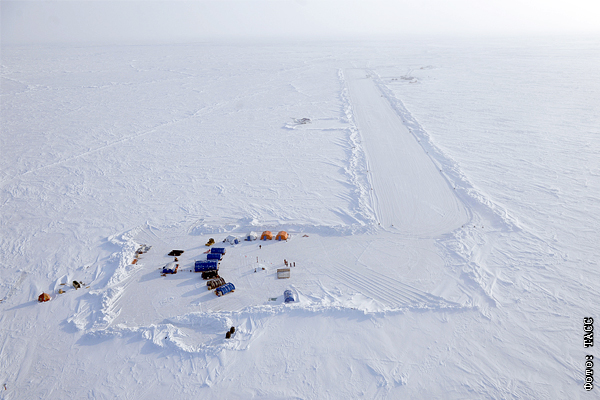 Вид на российскую дрейфующую станцию "Северный полюс-2015" из вертолета