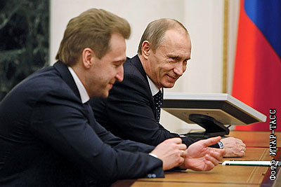 Первый вице-премьер Игорь Шувалов и премьер-министр РФ Владимир Путин (слева направо) перед началом совещания по экономическим вопросам в Кремле