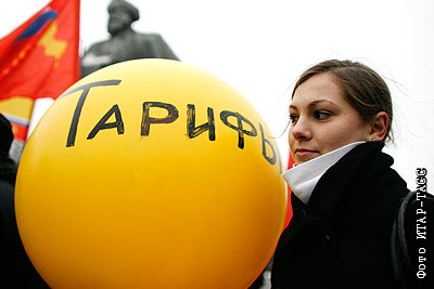 Активисты молодежного крыла "Справедливой России" во время акции протеста на Театральной площади с требованием заморозить тарифы на услуги монополий