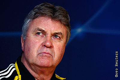Наставник "Челси" Гус Хиддинк на пресс-конференции перед матчем