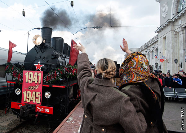 Жители Волгограда во время встречи исторического состава "Победа" на железнодорожном вокзале города