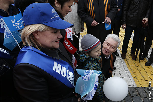 Мэр Москвы Сергей Собянин во время шествия профсоюзов на Красной площади