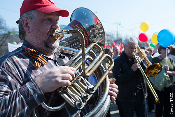 Россияне встречают праздник маршами и шествиями