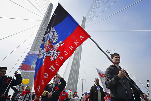 Участники первомайского шествия на мосту через бухту Золотой рог