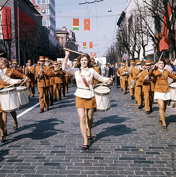 Вильнюс. Первомайская демонстрация трудящихся на улицах города. 1977 год.