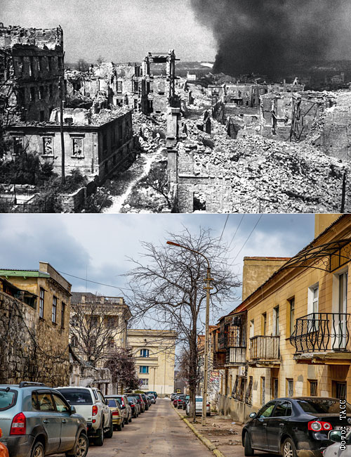 Редакция Interfax.ru делится подборкой снимков, сделанных в одних и тех же местах в военное время и спустя 70 лет