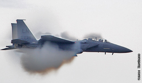Американский самолет F-15 Eagle во время выступления на международном авиасалоне МАКС-2011 в Жуковском