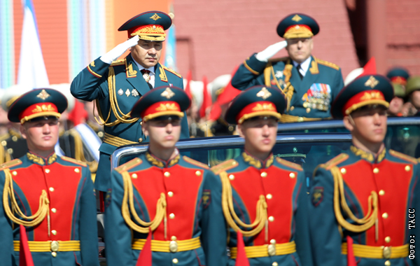 Министр обороны РФ Сергей Шойгу (слева на втором плане) во время военного парада на Красной площади