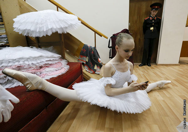 Ученица красноярского хореографического колледжа перед генеральной репетицией спектакля в Красноярском Государственном театре оперы и балета