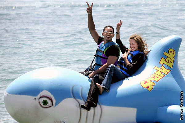 Анджелина Джоли и Уилл Смит на презентации мультфильма "Подводная братва", 2004 год
