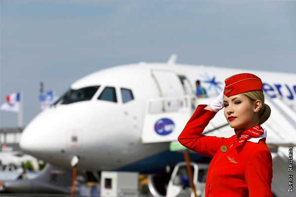 Стюардесса российской авиакомпании "Аэрофлот" на авиасалоне в Ле Бурже